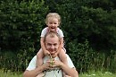 Рад папа, что дочка на шее его,
